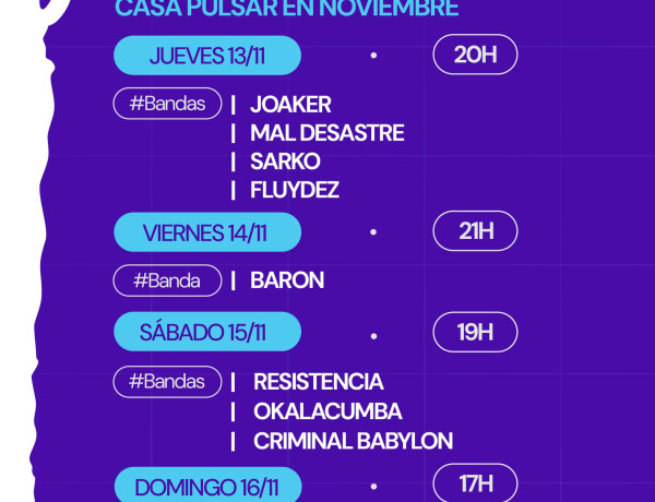 VIERNES: 24 y 31 de octubre, 7 y 14 de noviembre 21:00