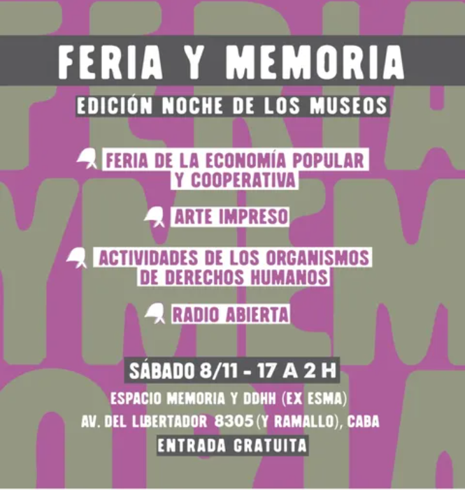 En noviembre Feria y Memoria llega con su edición Noche de los Museos en la ex ESMA