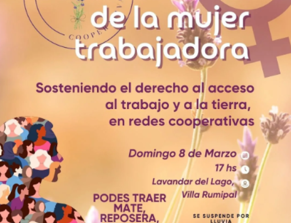 Este 8 de marzo, a las 17 hs, conmemoramos el Día de la Mujer Trabajadora en el Lavandar del Lago, Villa Rumipal.