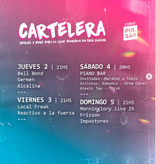 -Jueves 2 - tres shows en una noche @bellbond_ @germen.lp y @alcalina._ 21hs