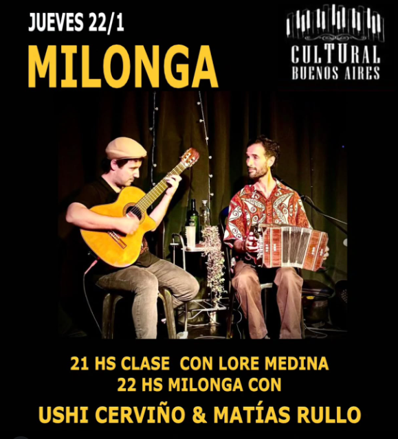 - 21 hs: clase de milonga con Lorena Medina (@piropotango)