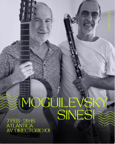 El 7 de febrero, dos grandes de la música popular argentina, el multiinstrumentista @moguilevskymarcelo y el guitarrista @quiquesinesi_, se presentan en Atlántica Libros y Café.