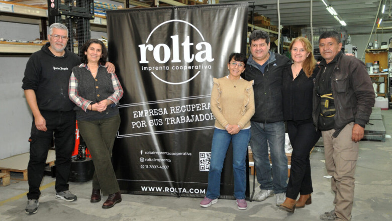 Rolta tiene más de 40 años en el barrio de Balvanera, Ciudad de Buenos Aires. Su historia es la de muchas empresas recuperadas de Argentina: tras la quiebra presentada por los dueños originales en julio de 2020, fue rescatada por un grupo de trabajadores en medio de la pandemia. Continuaron con el trabajo de siempre, haciendo impresiones de todo tipo: libros, revistas, catálogos, agendas, cuadernos, juegos de mesa, figuritas. También realizan packagings de estuches de CD, contenedores, blisters y cajas, entre otros productos. «Fuimos detrás de un sueño: mantener la fuente laboral. Afortunadamente logramos reinventarnos y convertirnos en cooperativa», asegura Viviana Britez, una de las seis personas que se quedó en Rolta para formar la cooperativa.